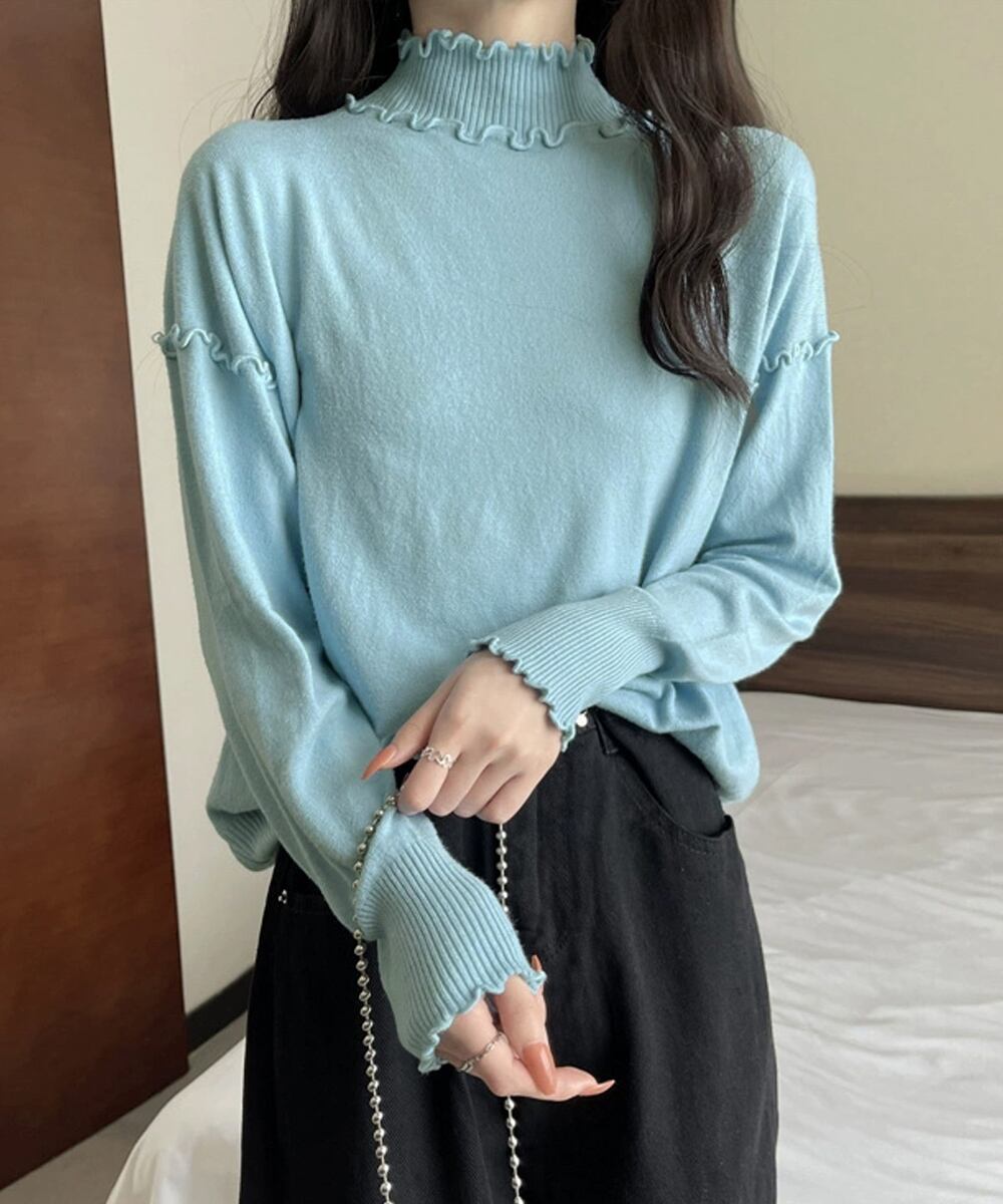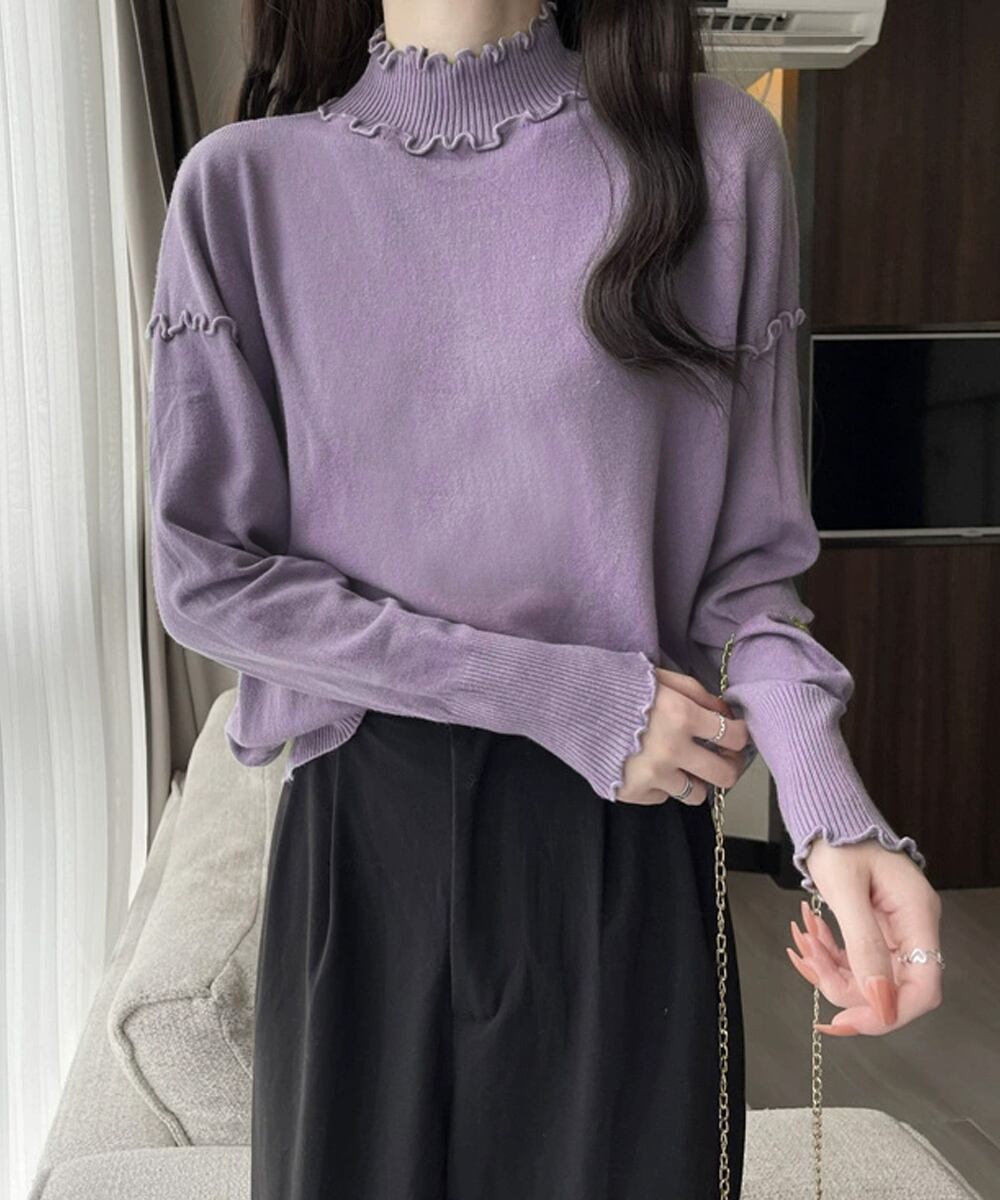 メロウフリル リブニット プチハイネック