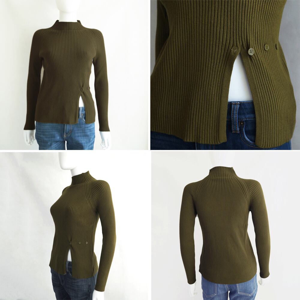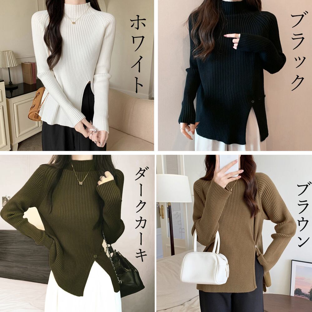 ニットトップス スリット入り 春秋冬
