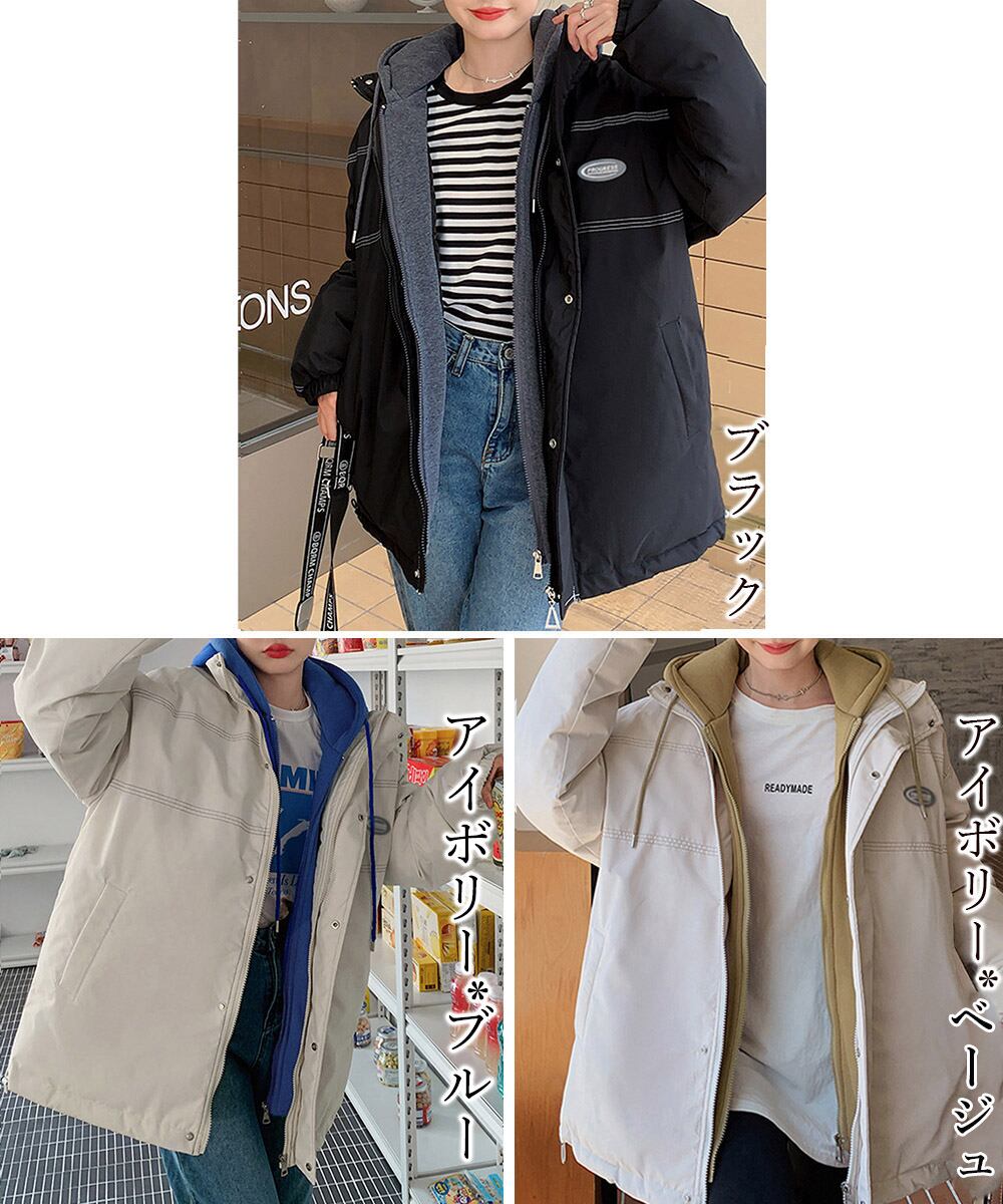おしゃれ フェイクダウンジャケット レイヤード風 ダウンパーカー カジュアル フーディーブルゾン ゆったり 防風防寒冬服