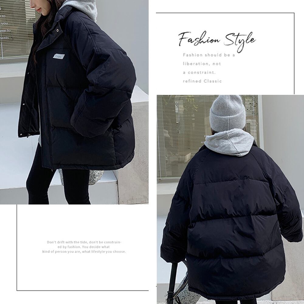 レディース スタンドネック フェイクダウンコート ロゴ付きあったかいアウター カジュアル ブルゾン 体型カバージャンパー