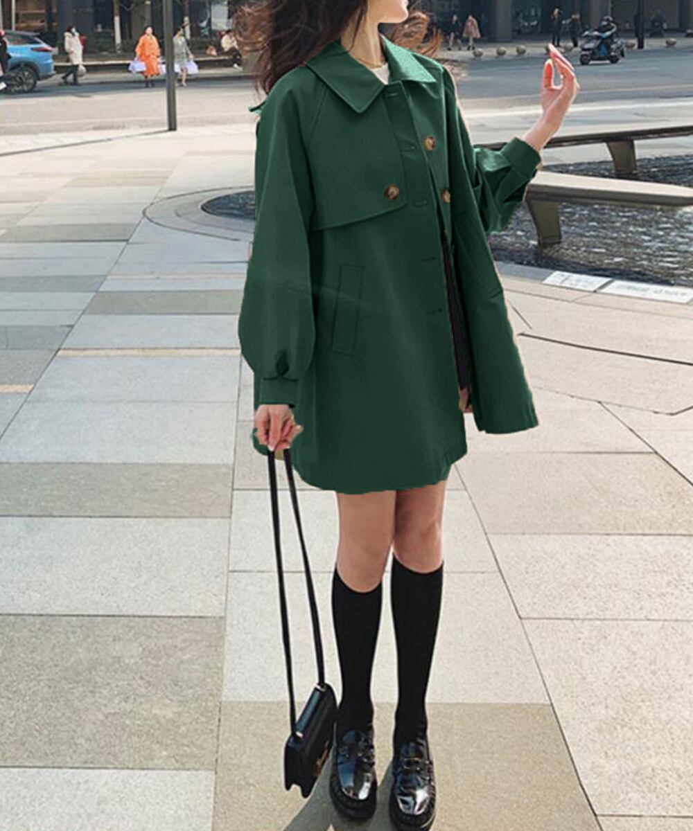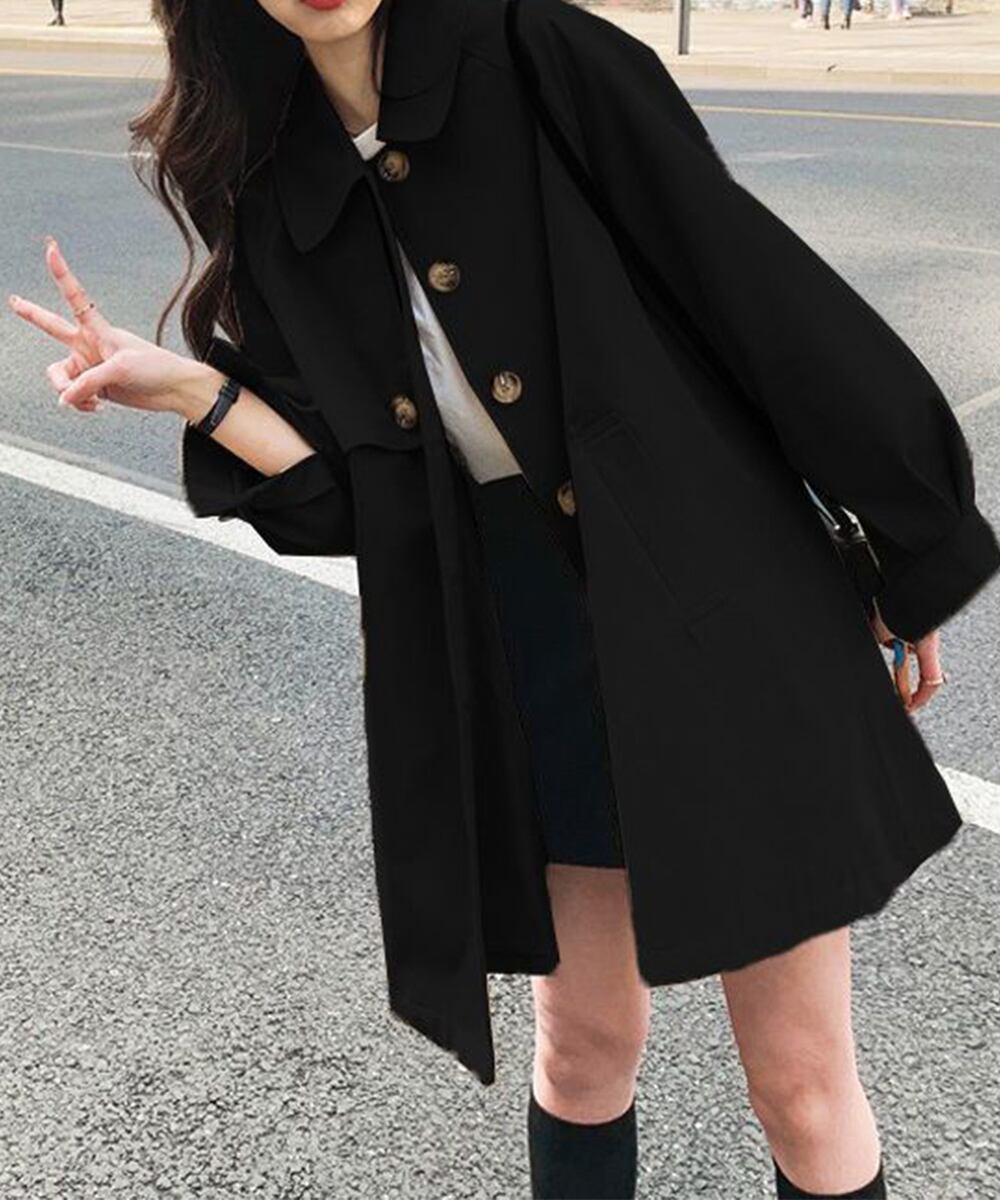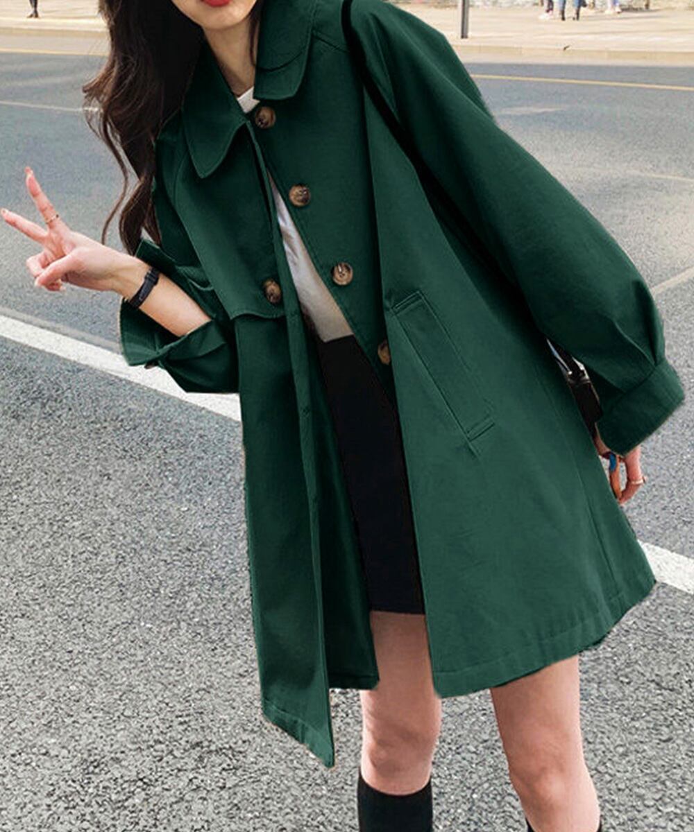 おしゃれ ミドルトレンチコート オフィスカジュアル 韓国 春秋ライトアウター こなれ感 テーラードジャケット 体型カバー