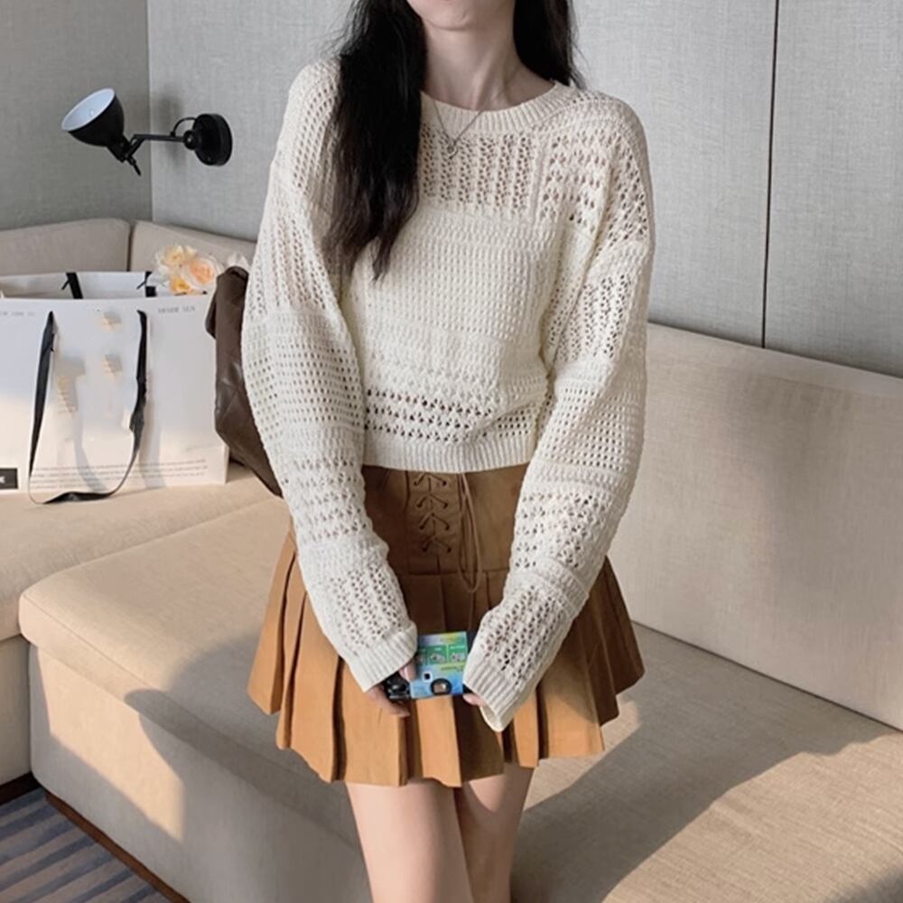 韓国ファッション 可愛い メッシュ編みニット プルオーバー セクシーサマーニット ショート丈トップスおしゃれ 薄手透け感