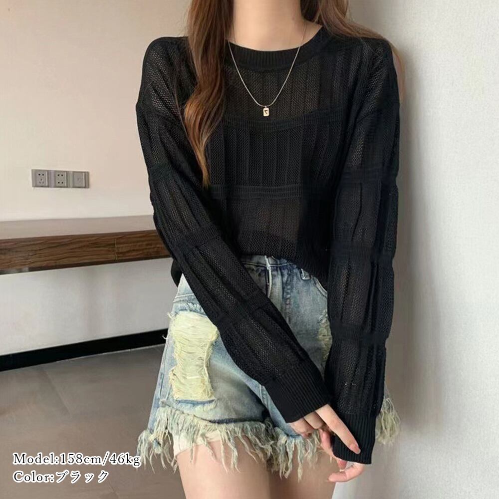 レディース クロシェ編みトップス 春夏秋 薄手トップス プルオーバー 冷房対策 ニットトップス お洒落