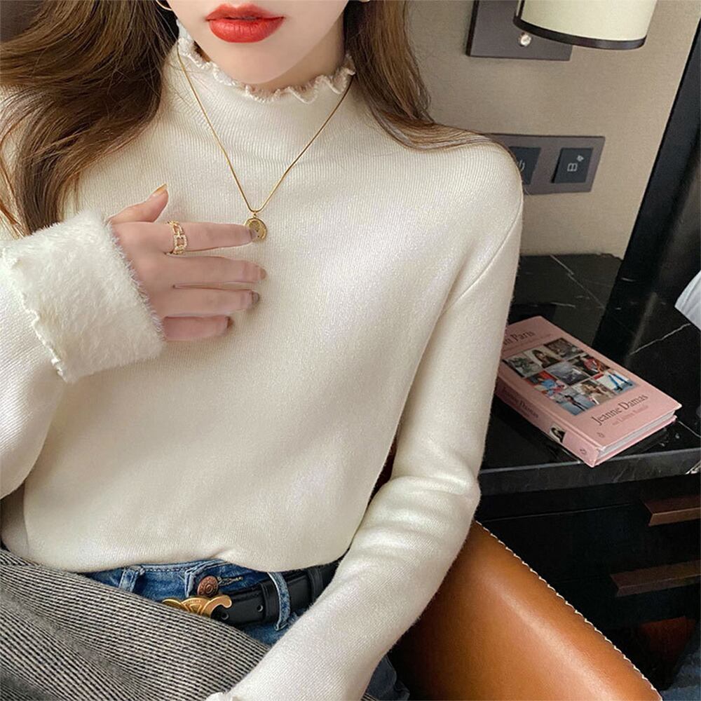裏起毛ハイネックニットトップスレディース
