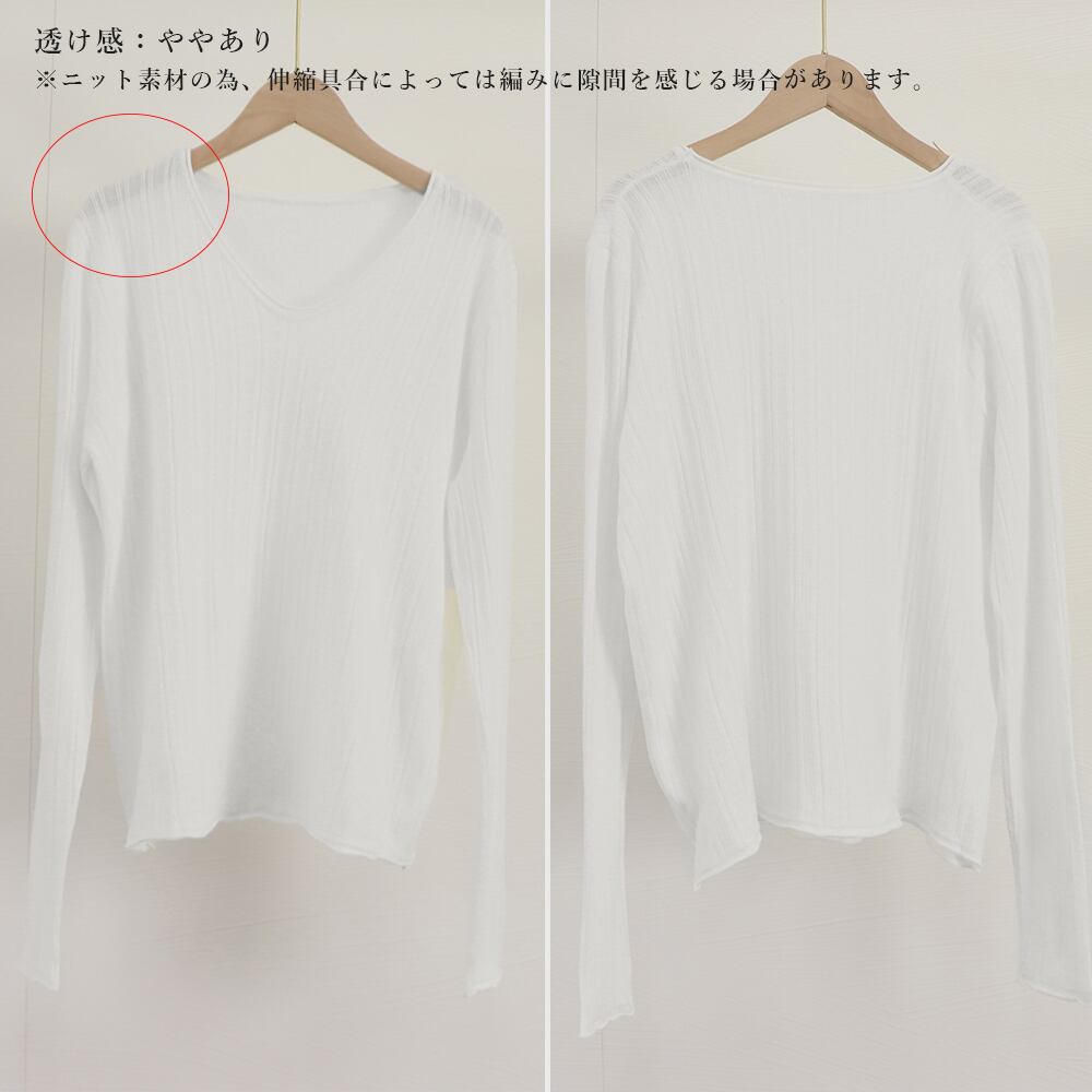 程よい深さのVネックデザイン、デコルテ周りをスッキリ見せ、上品で清楚な印象を与えてくれる