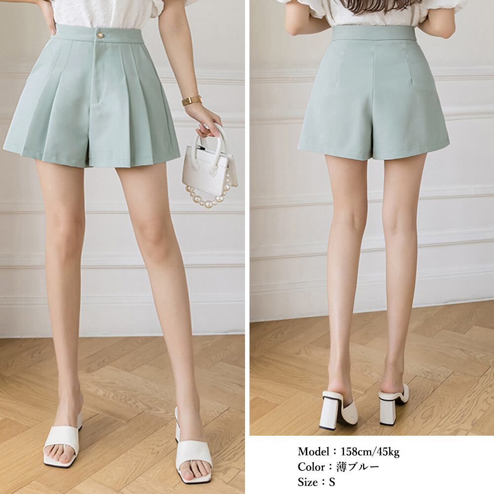 無地 ショートパンツ 夏 ミニ丈パンツ Aライン ハイウエスト きれいめ 着やせ 美脚 ボトムス タック 短パンブラック
