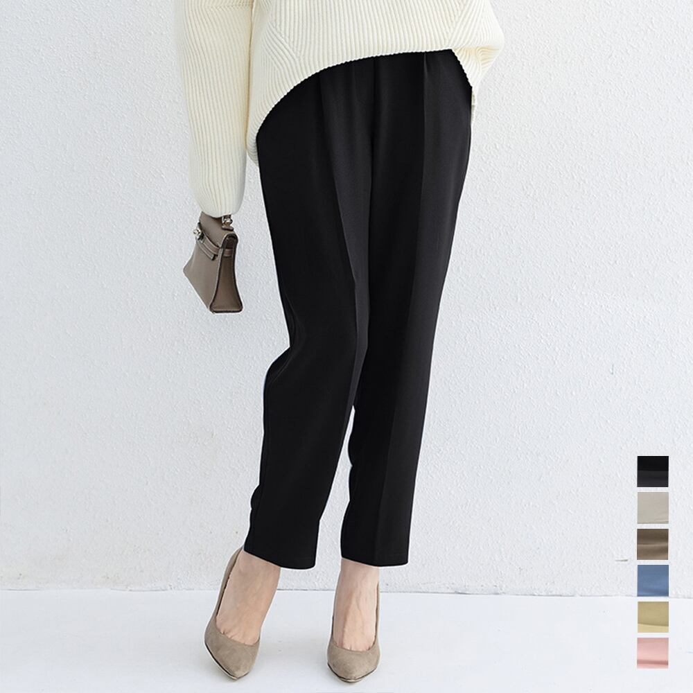 黒パンツ 着やせ オフィスカジュアル ウエストゴム 無地