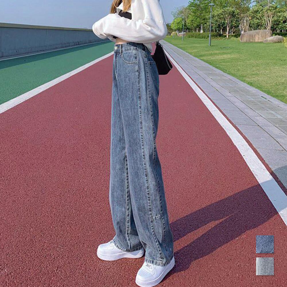 韓国風 レディース セミワイドパンツ カジュアル ジーンズ 着やせ オルチャン ストリート ボトムス お洒落 春秋夏