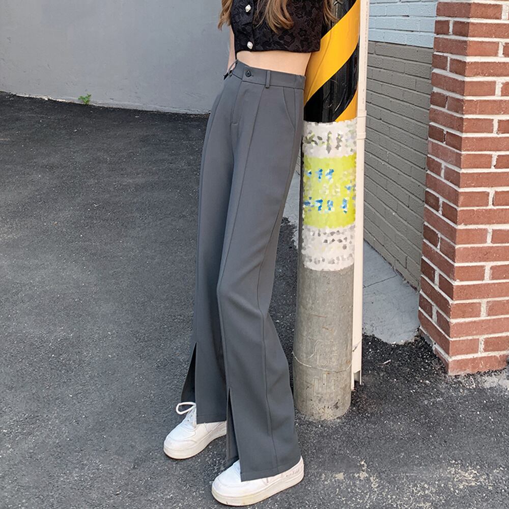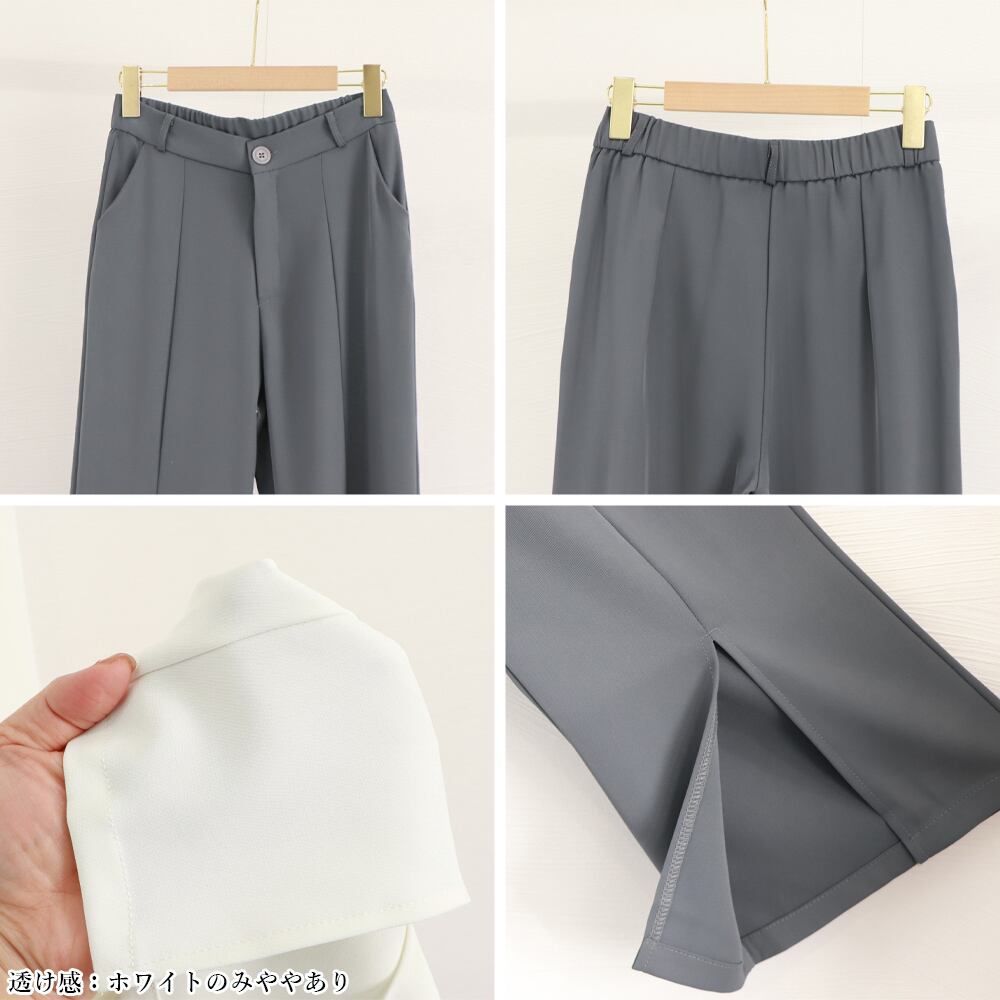 レディース おしゃれ センタースリット ストレートパンツ ハイウエスト ゆったり センタープレス セミワイドパンツ着やせ