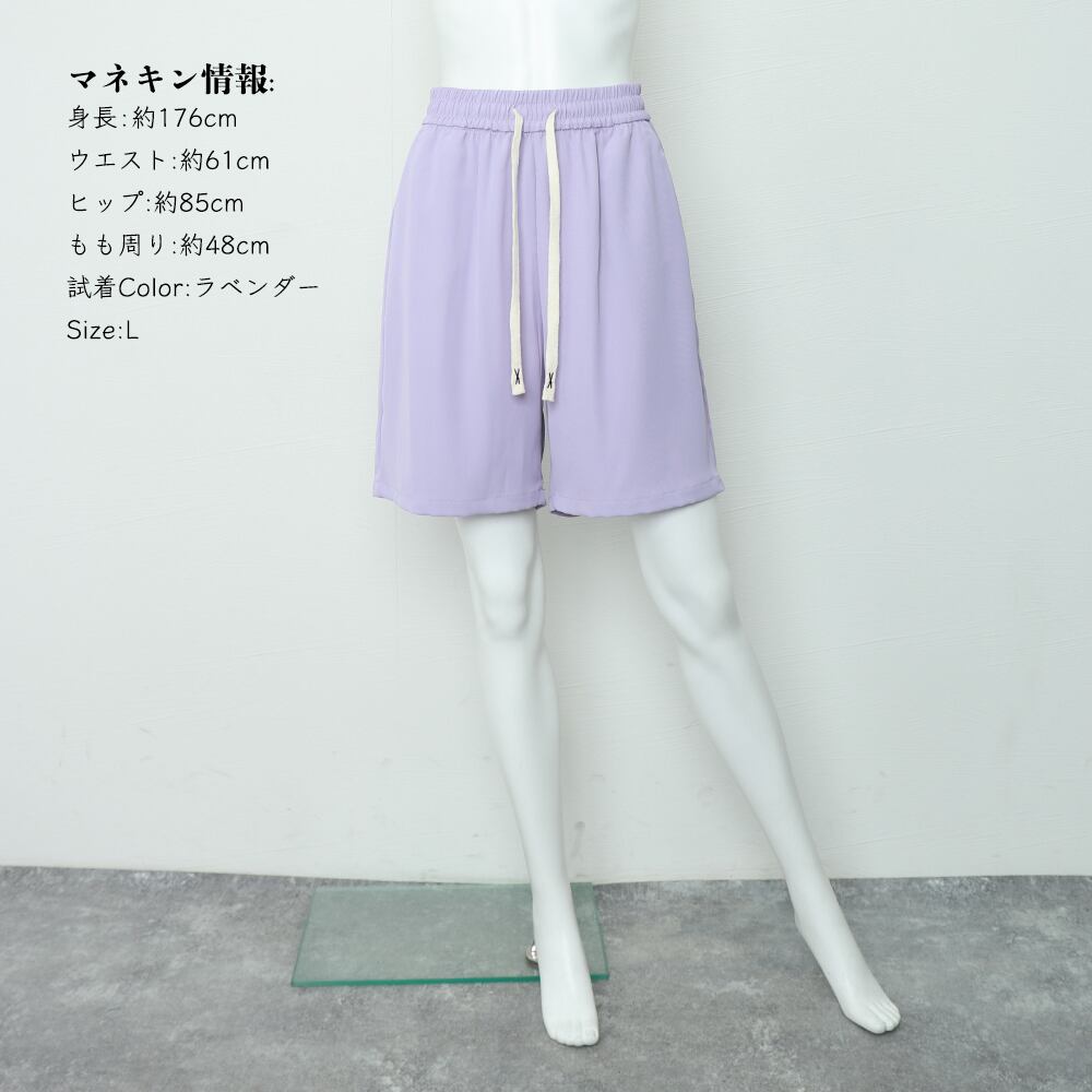 [L]着丈:約51cm 股下:約18cm ウエスト(ゴム仕様):約60-82cm ヒップ:約108cm もも周り:約58cm