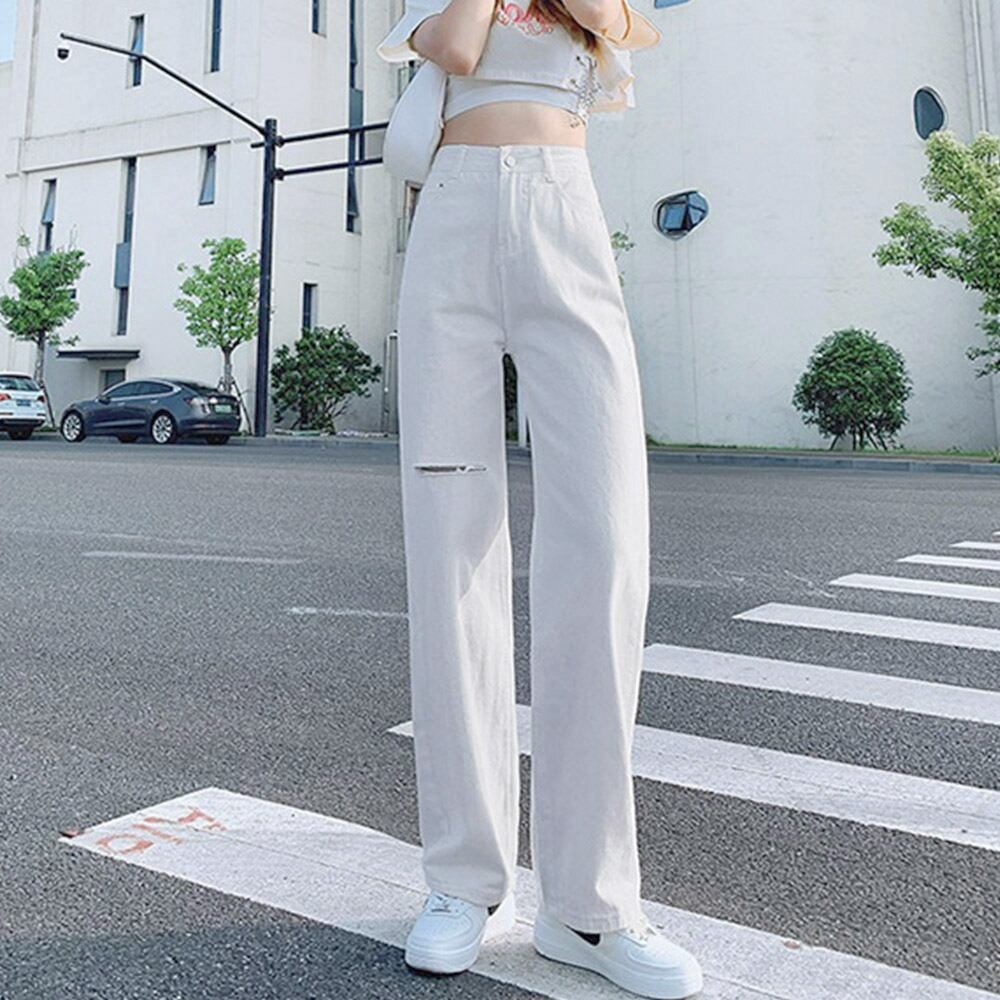 デニムストレートパンツ ダメージジーンス