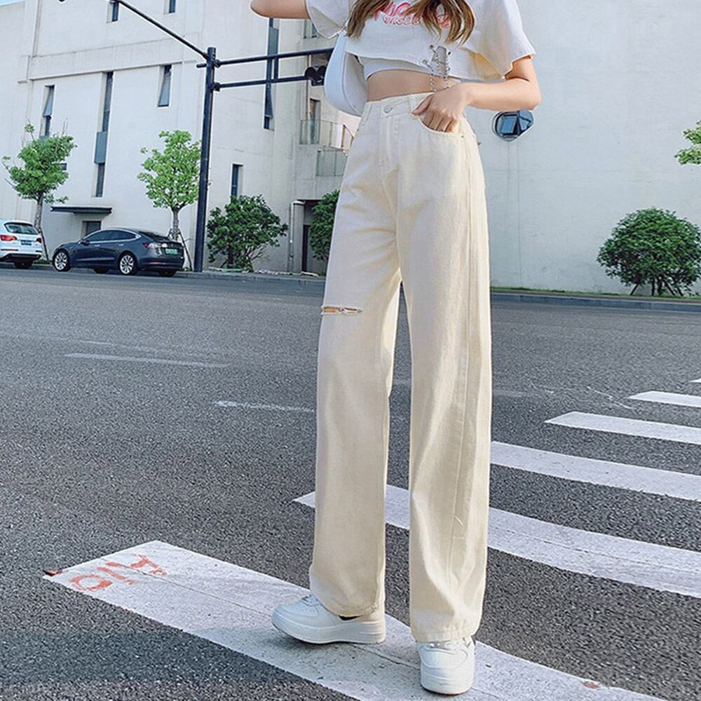 レディース ゆったり デニムワイドパンツ ハイウエスト ジーパン オシャレ カジュアルロングパンツ 脚長ボトムス 春秋夏