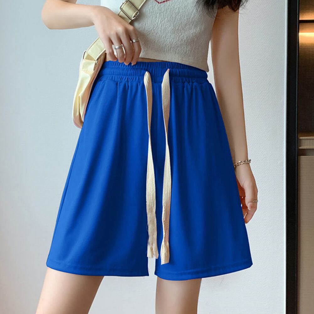 レディースボトムス ハーフパンツ ウエストゴム 紐付き ひざ上ズボン カジュアル ゆったり シンプル カラー短パン