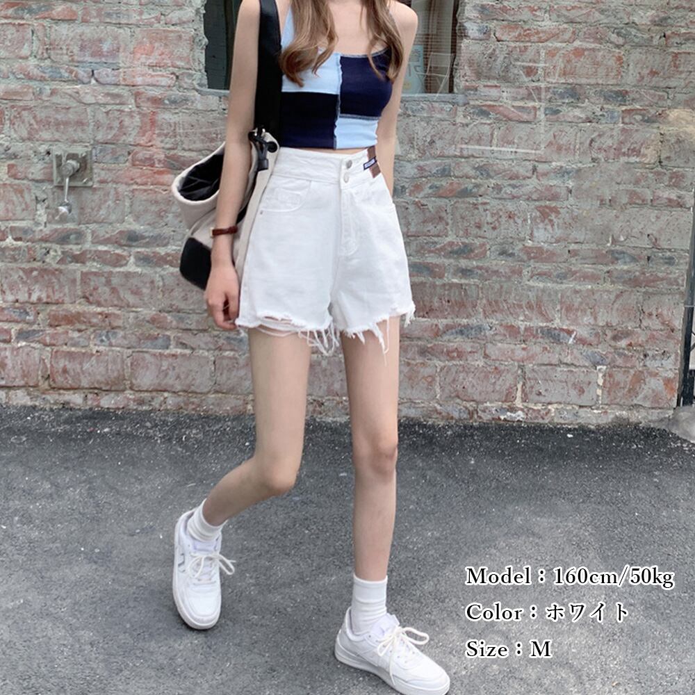 ホットパンツ レディース ハイウエスト ショーパン ヴィンテージ風 デニム短パン カットオフ ボトムス ミニ丈ズボン 夏