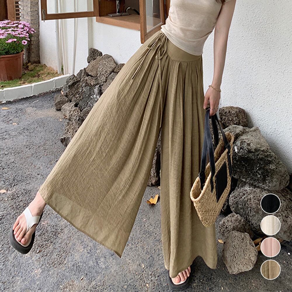 ワイドパンツ 春夏秋 きれいめ ガウチョパンツ リネン ハイウエスト フレアパンツ 薄手 ロングパンツ ナチュラル 韓国