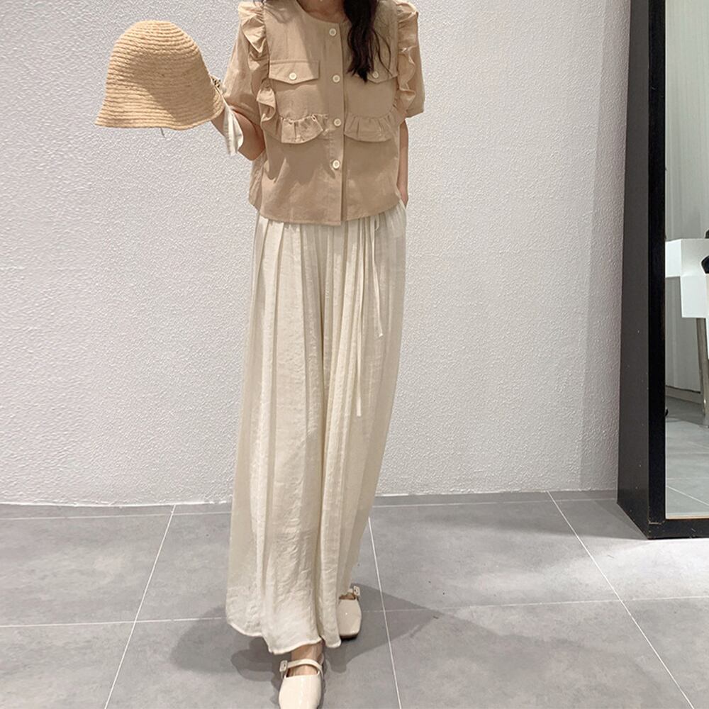 上質な天然素材にスカート見えする女性らしいDesign、ラフながらも優雅で上品な風合いが魅力のとろみロングパンツ