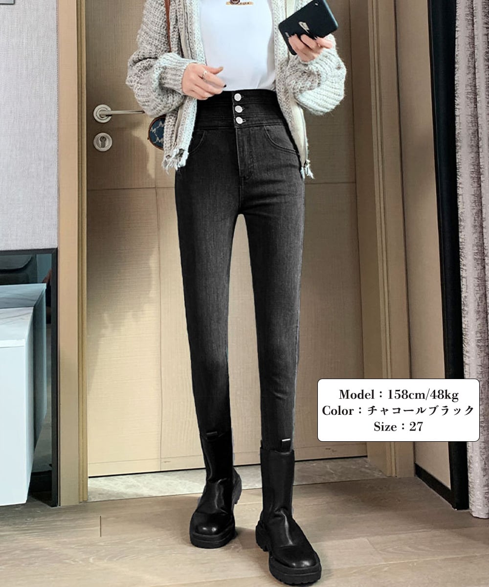 レディース ジーンズ 着やせ パギンス タイトジーパン 3つボタン付き ストレッチ ロングズボン オシャレ きれいめ韓国