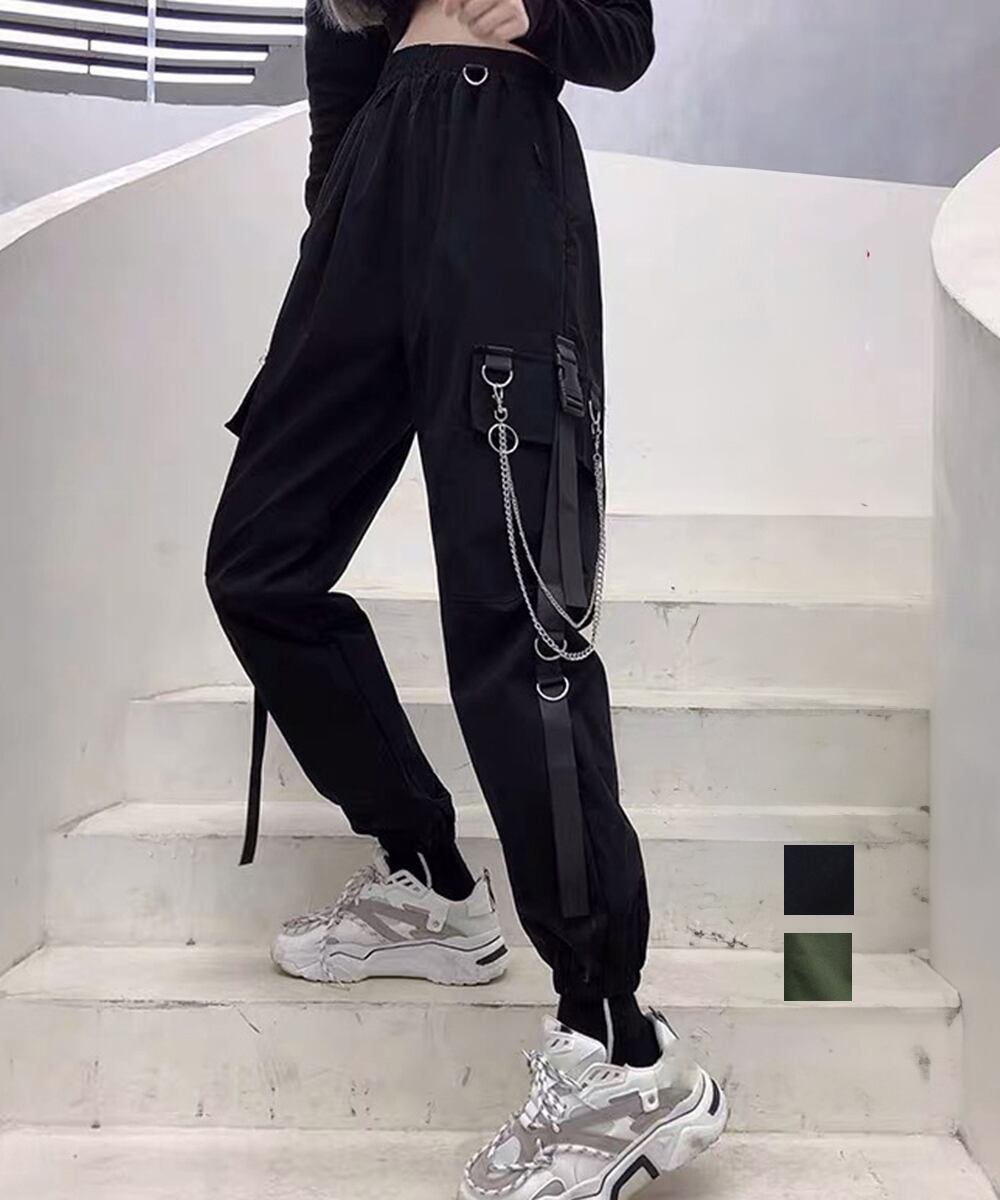 ジョガーパンツ レディース 韓国ファッション ヒップホップ ウエストゴム ストリート系 ダンスウェア