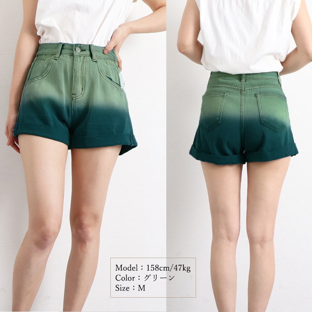 カラフルな生地でいつものコーデプラッシュアップしてくれるグラデーションカラーデニム ショートパンツ