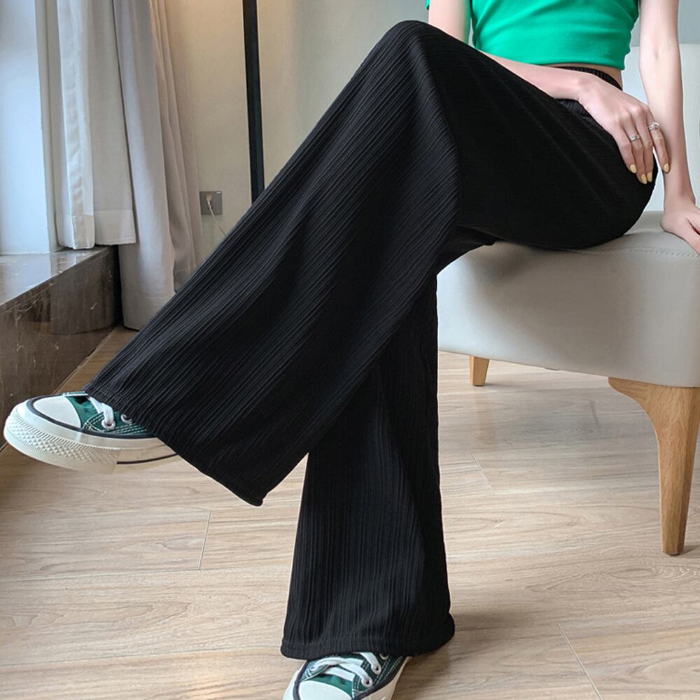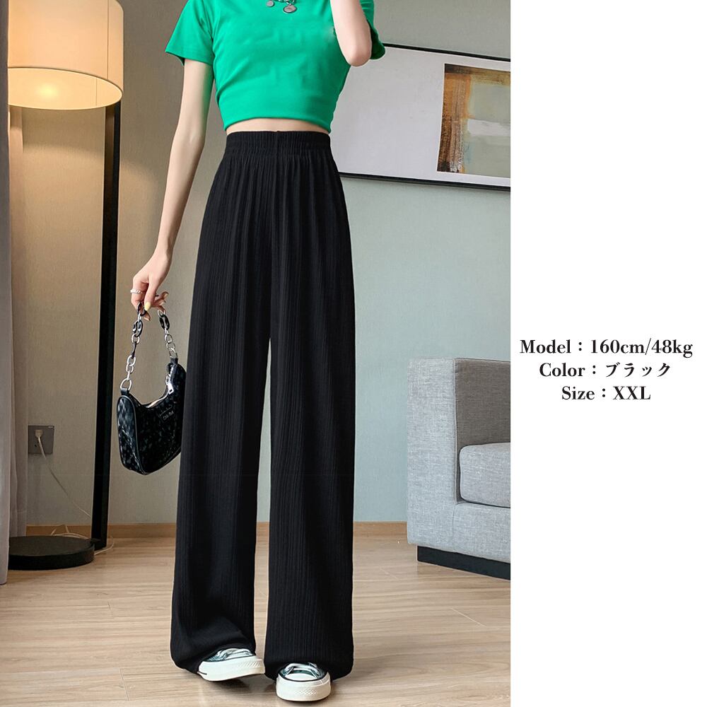 レディースボトムス 韓国 ストレートパンツ ロングパンツ ウエストゴム カジュアル フェミニンおしゃれ デート服春夏秋