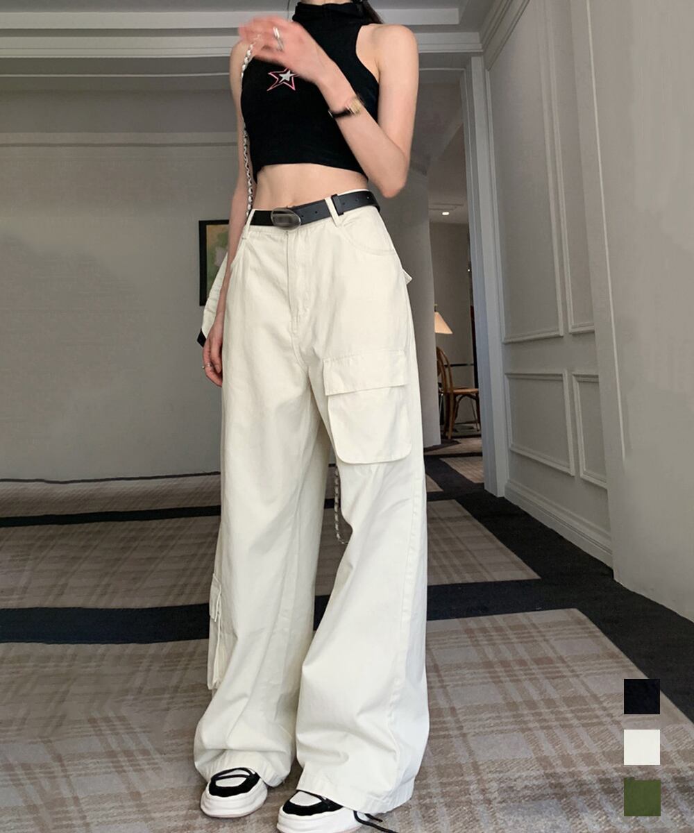 ワイドカーゴパンツ ハイウエスト 韓国風