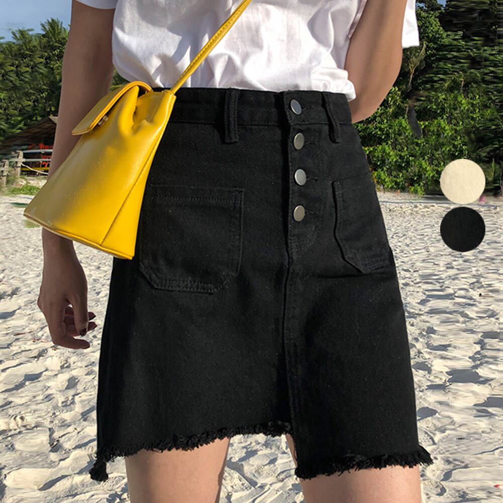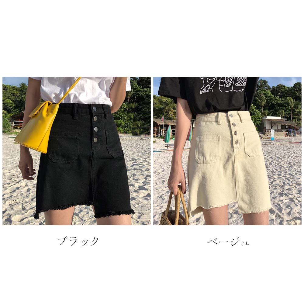 スカート レディース ハイウエスト タイトスカート ショート丈 ボタンAライン