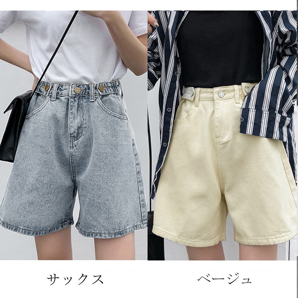 ハイウエスト ショーパン デニムワイドパンツ 春夏秋 ホットパンツ ゆったり ロールアップ 短パン カジュアル ボトムス