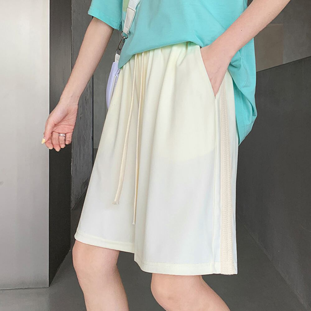 レディースボトムス 膝上丈 イージー リラックスパンツ 短パン サイドライン ゆったり ダンス衣装 ルームウェア 運動着