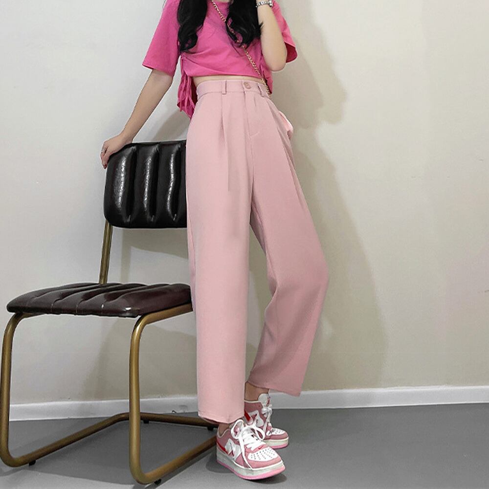 レディースボトムス 韓国 ハイウエスト ストレートパンツ 美脚タックパンツ カジュアル おしゃれ 大人 春夏秋 6色