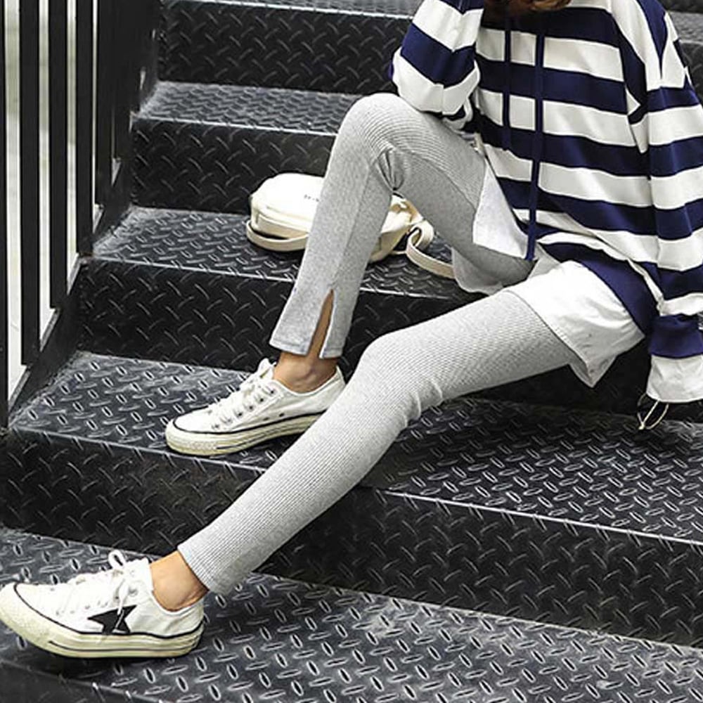 リブレギンスパンツ レディース スリットパンツ ウエストゴム レギンパン ストレッチ 無地 タイツ パッツ 美脚