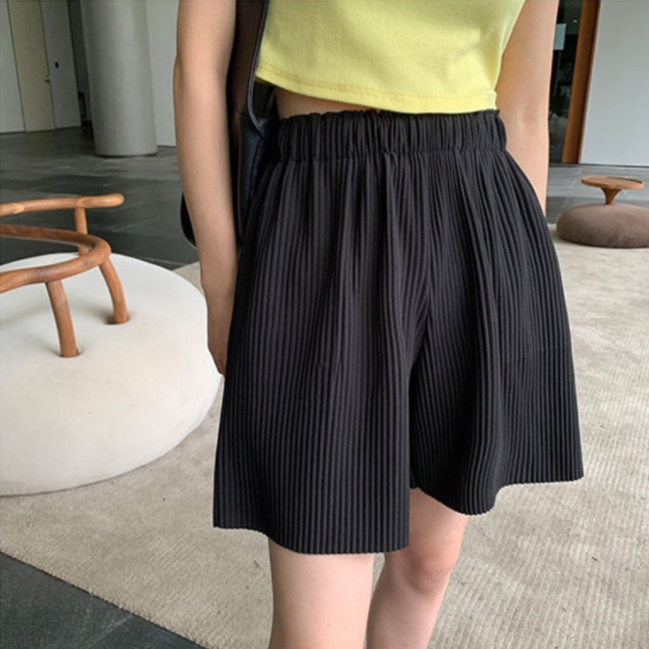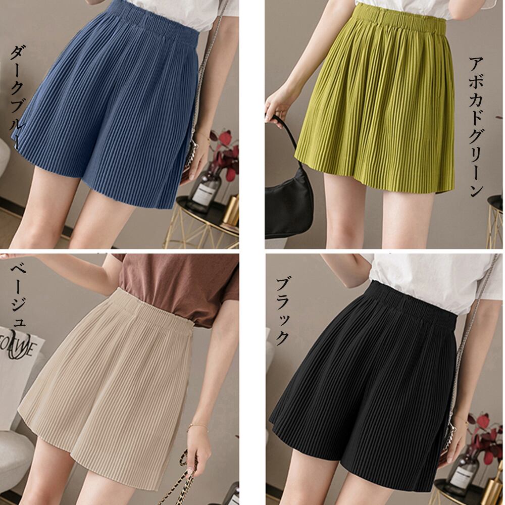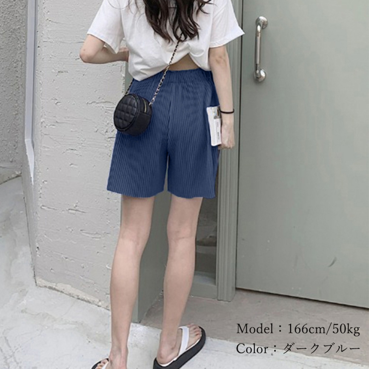プリーツ ショートパンツ 春夏 ウエストゴム カジュアルパンツ 着やせ ゆったり ワイド ショーパン リラックス 短パン