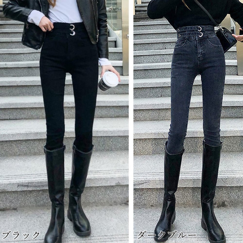 デニムパンツ レディース ハイウエスト スキニーパンツ 細身 ボトムス ストレッチ ジーパン 着やせ 韓国風 美脚見せ