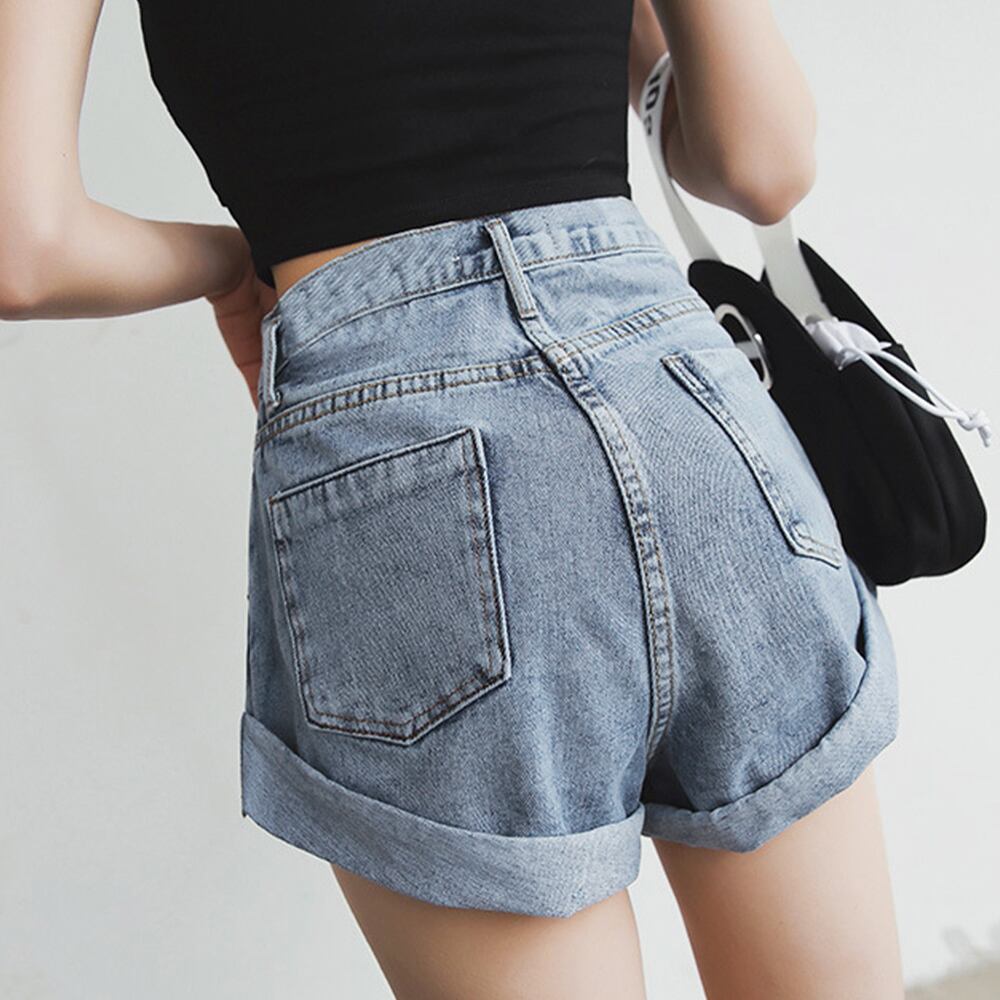 デニム ショートパンツ レディース 裾ロールアップ ホットパンツ ウエストゴム