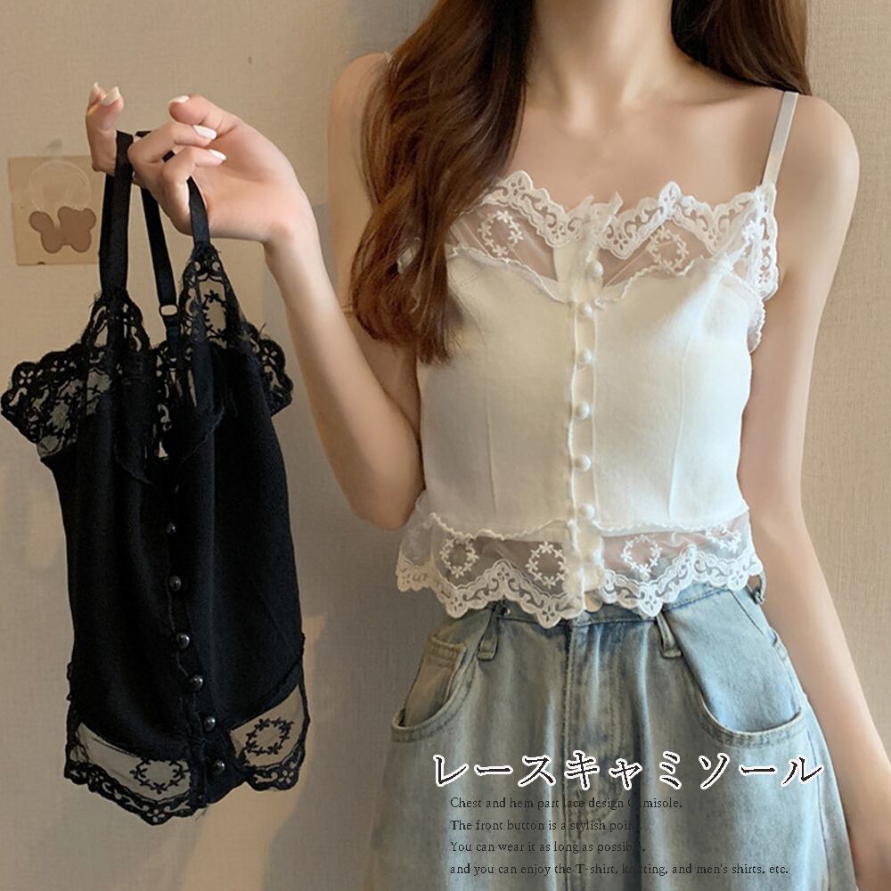 キャミソール トップス ショート丈 インナー ボダン レース 大人可愛い 肌着