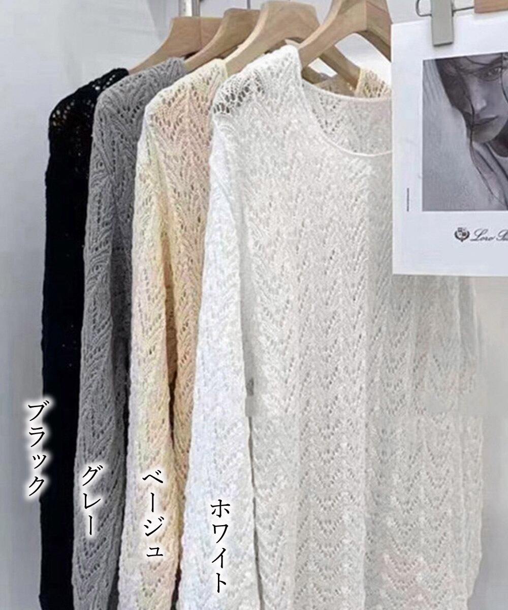 20代30代ニット 薄手透け感トップス クロシェ編み 長袖