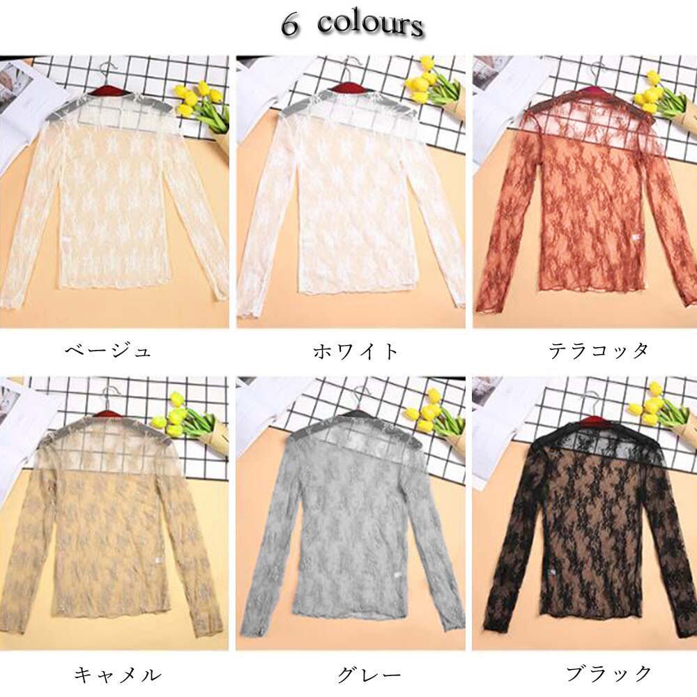 レース チュール トップス レディース ハイネック レースインナー シースルー 長袖 トップス