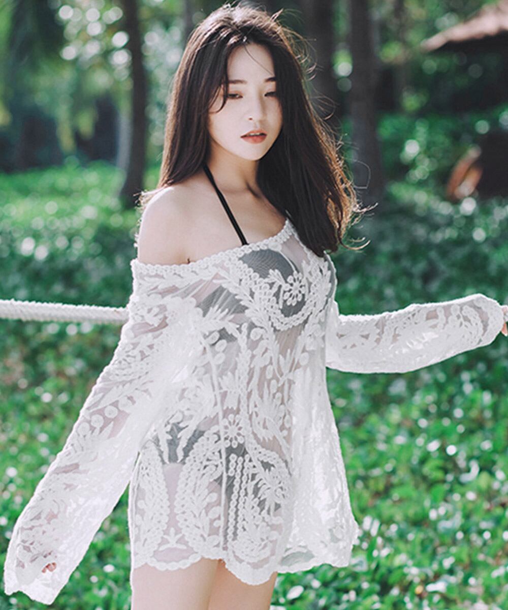 ビーチリゾートでひときわ美しく際立つ繊細なカギ編みビーチウェア