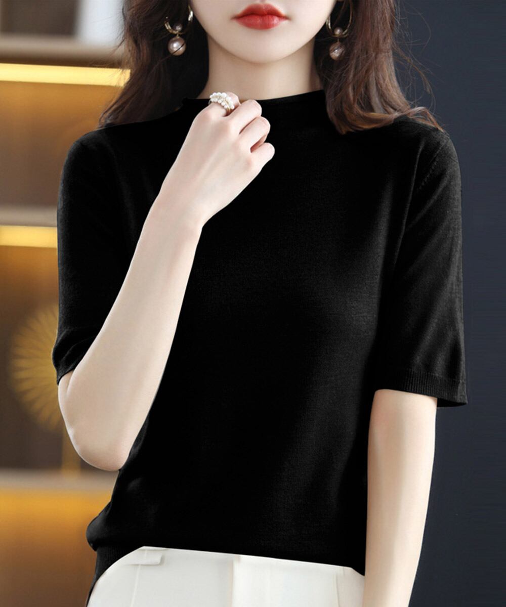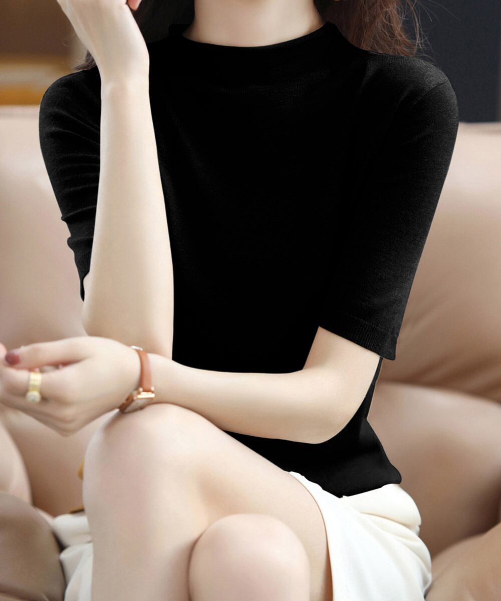 プチハイネックで女性らしく着られるサマーニット