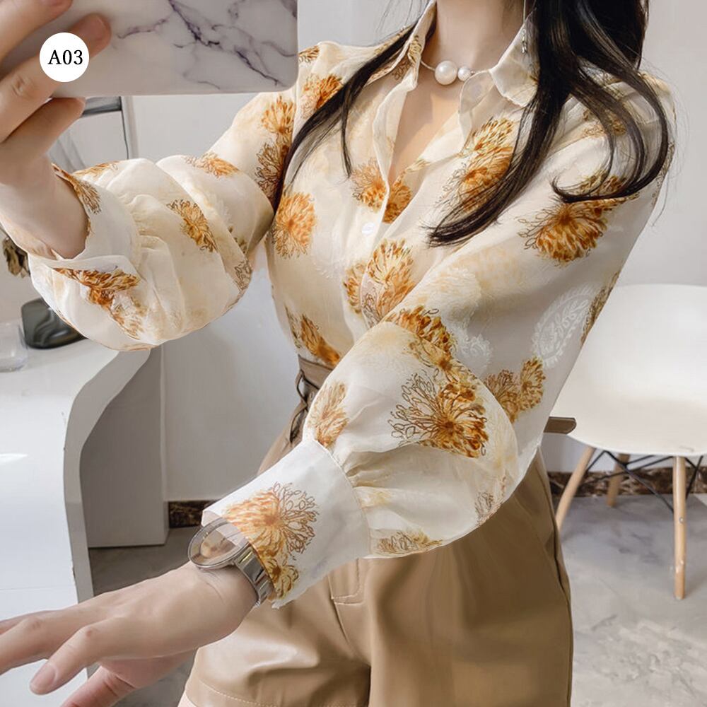 上品な花柄のプリントがシアーな生地に映え、エレガントさを際立たせるシアーシャツです