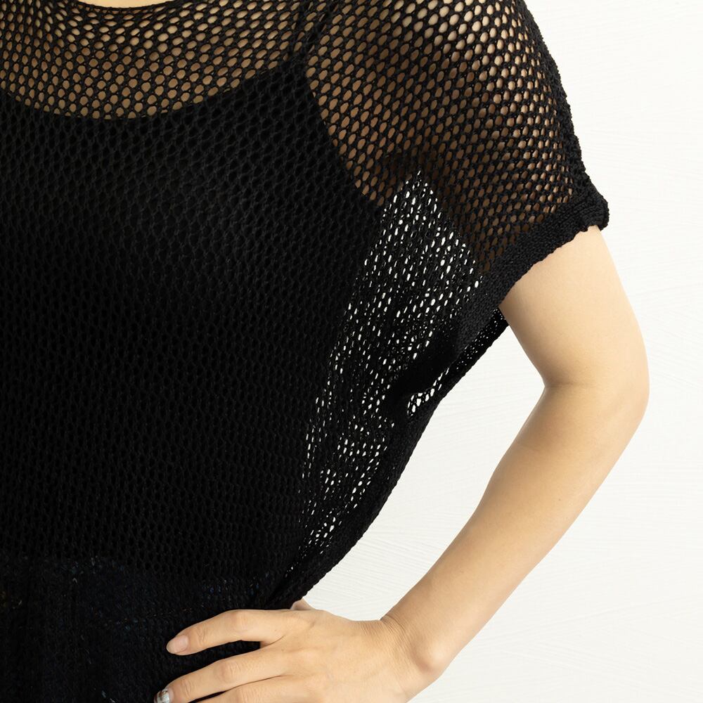 シーズンライクな透け感のある涼やかな風合いの新作メッシュニットプルオーバートップス