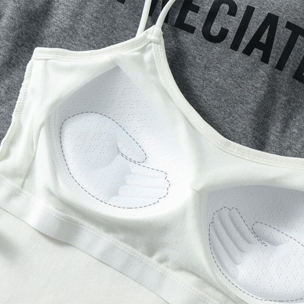 カップ付き キャミソール 英字ロゴ 韓国