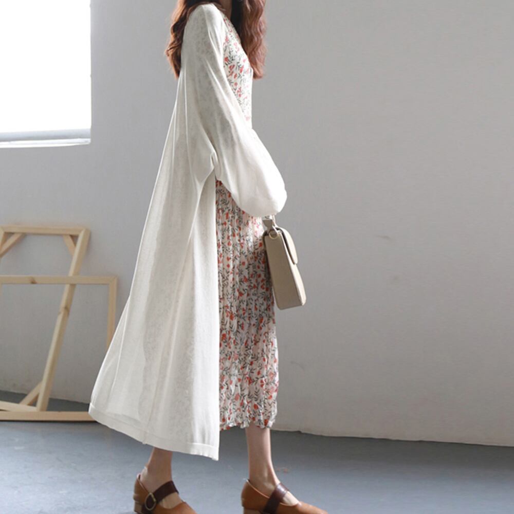 レディース オープンロングシアーカーディガン 長袖 ライトアウター 軽いサマーニット 羽織り 体型カバー トッパーカーデ