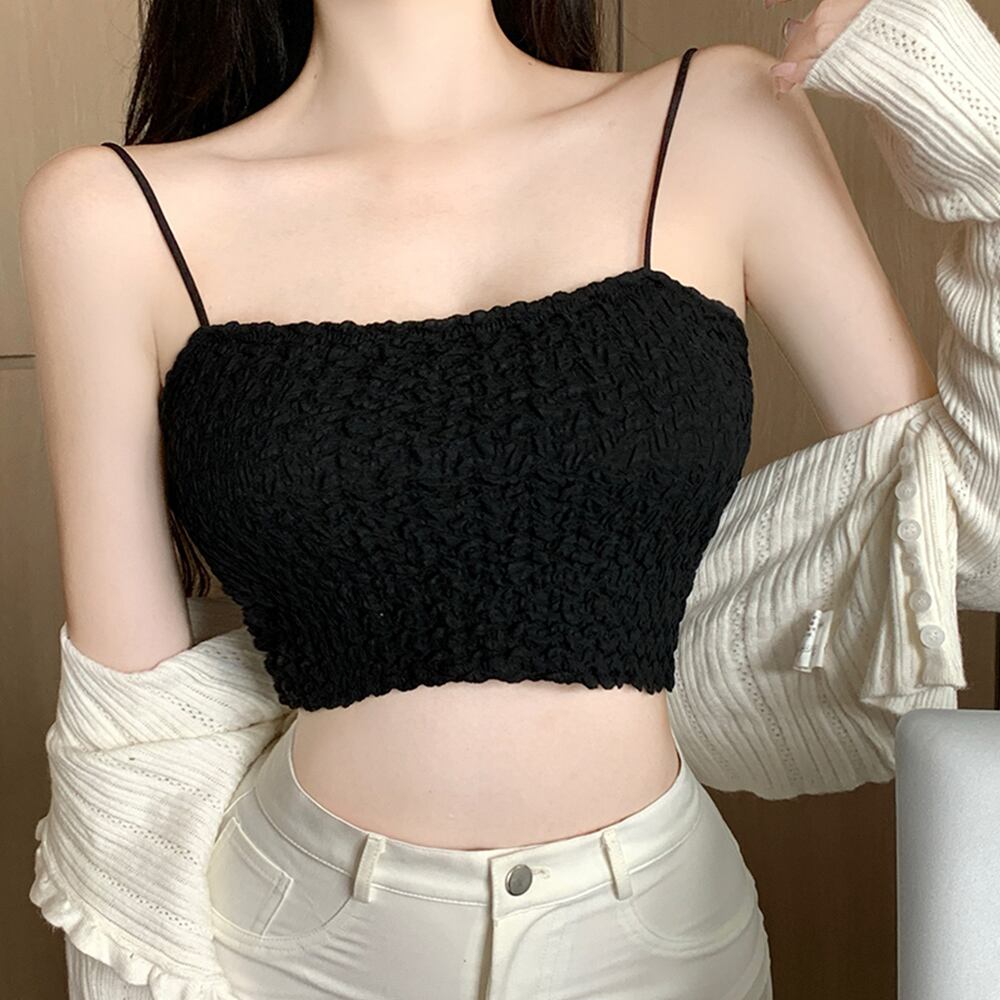 シャーリングデザインのショート丈キャミソール