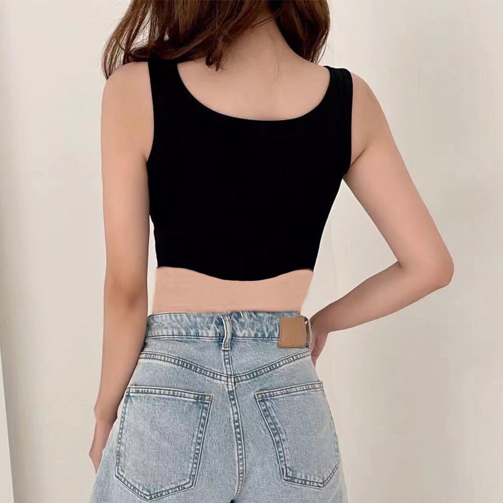 カップ付きなので1枚でもすぐにサマになるショート丈のレディース新作タンクトップ