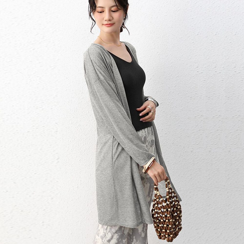ボレロ カーディガン ミドル丈長袖カーディガン 春夏トップス アウター 羽織る ロングニットカーディ 体型カバー さらり