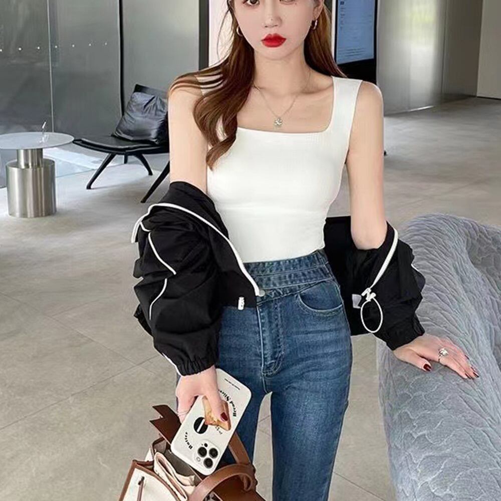 夏の暑い時期でも一枚で快適に着用できる、カップ付きタンクトップ