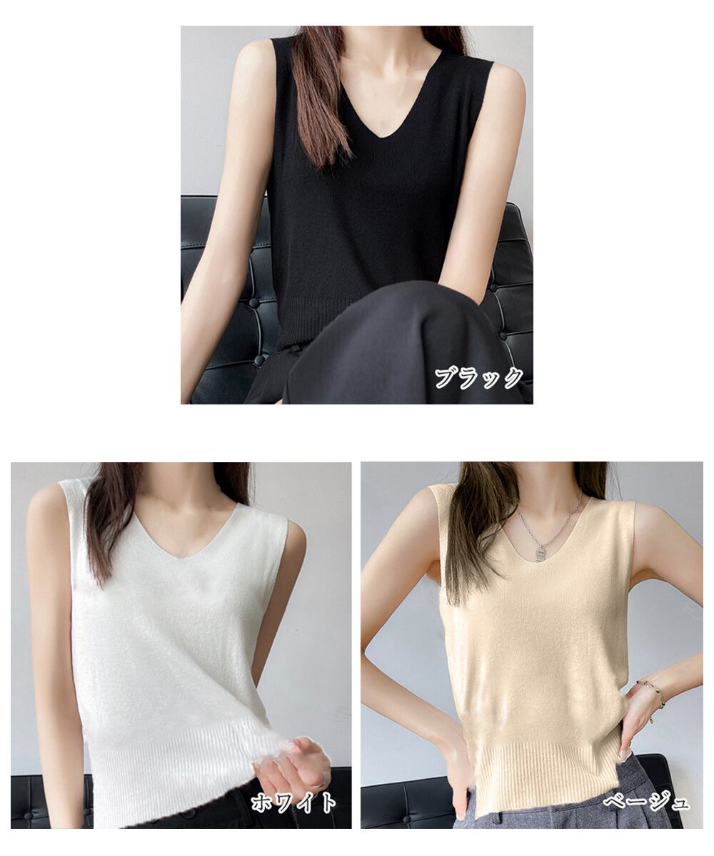 ノンスリーブ シンプル 薄手ニット プチプラ レディース 重ね着インナートップ カジュアル 無地ニットトップス おしゃれ