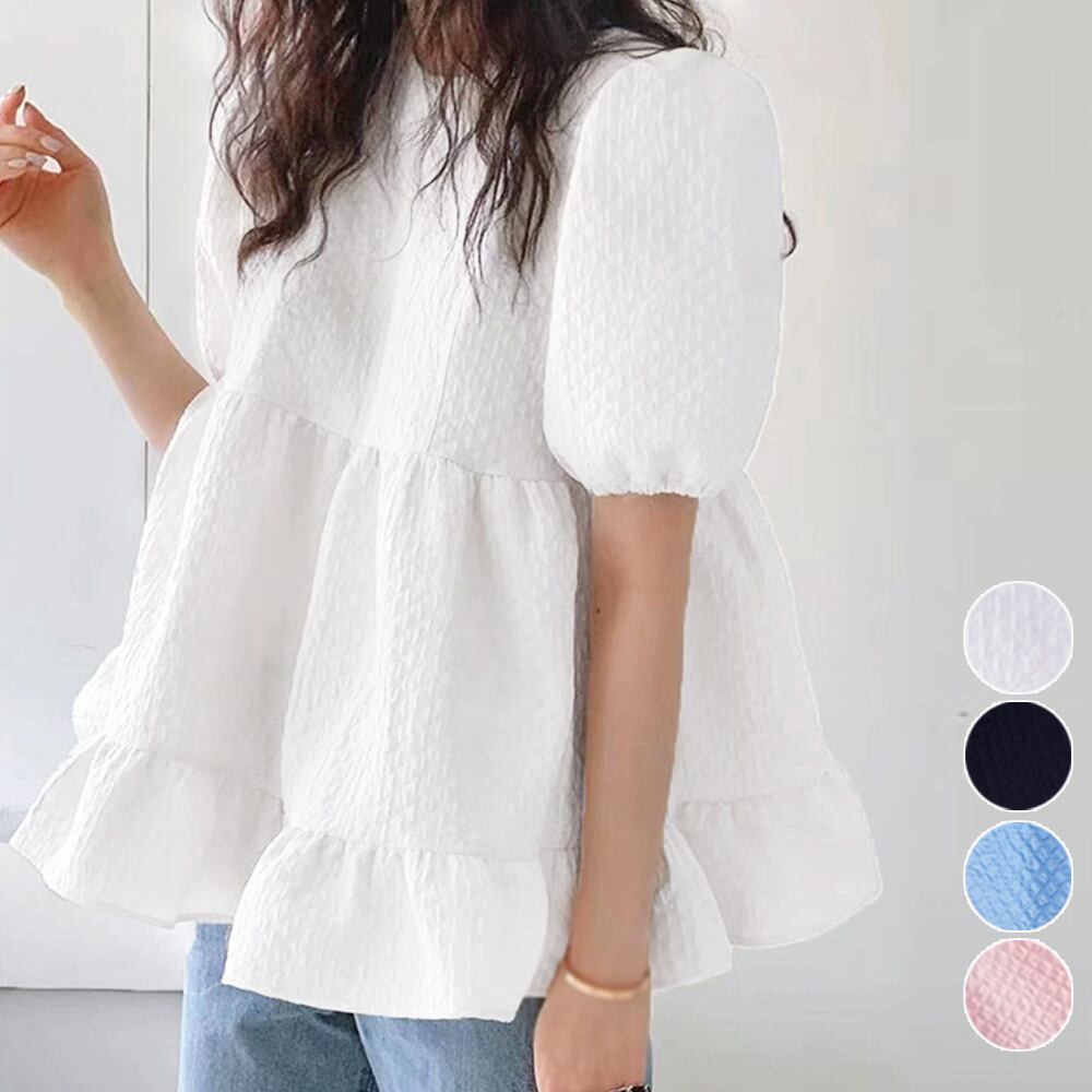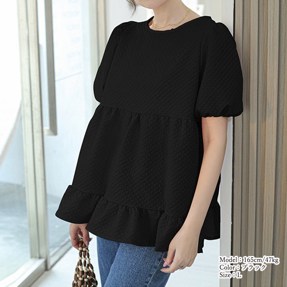 ふんわリとしたボリューム感で品のある女性らしい半袖ティアードトップス