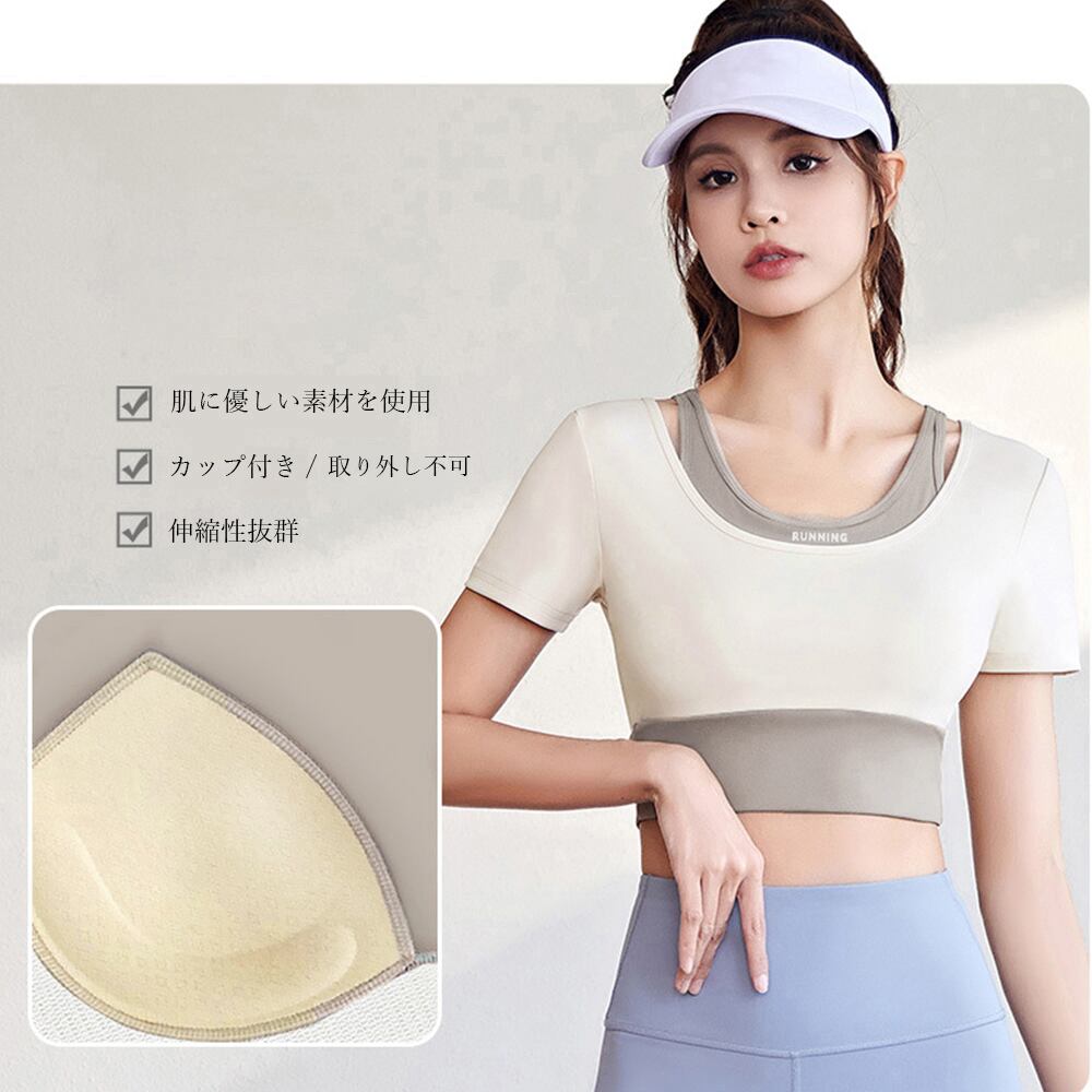 カップ付き スポーツウェア レイヤード ジムウェア テニス マラソン ランニングウェア バレエダンス フィットネスウェア