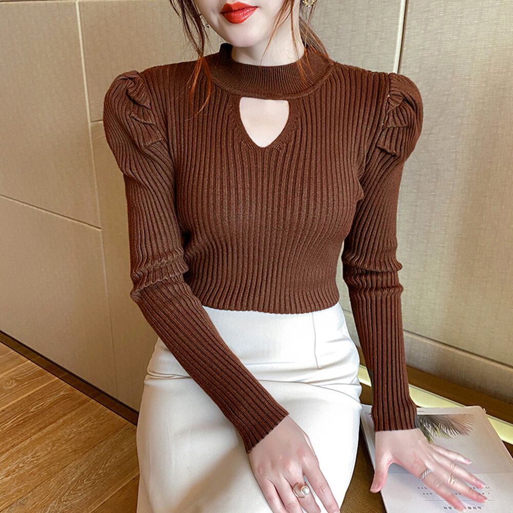 レディース 韓国 フロントオープン ニットプルオーバー 胸開きニットソー セクシー 着やせニットインナー おしゃれ 7色